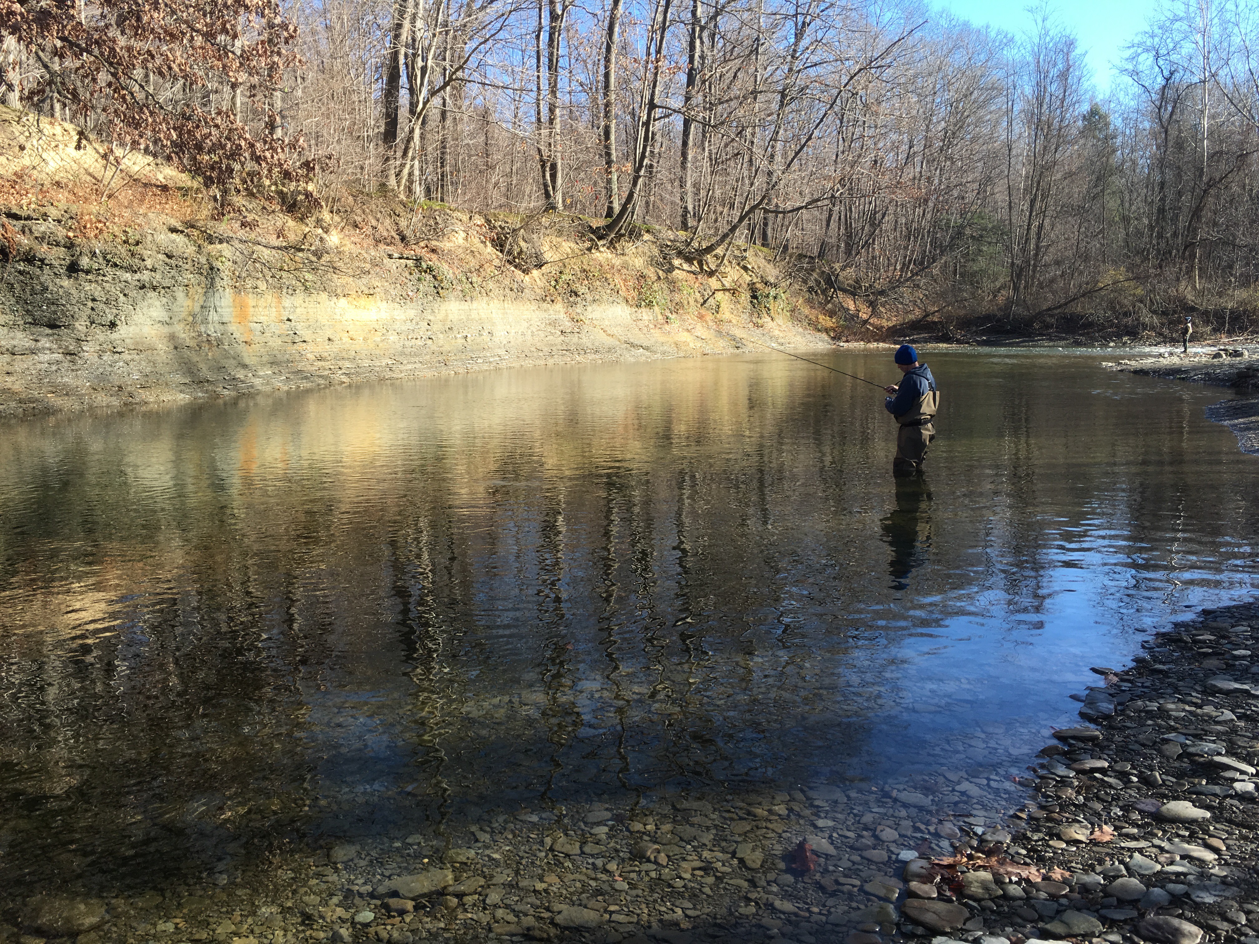 Streams are very low and clear. Fish are spread out around the creeks but they are very nervous. They can see you as good as you can see them.