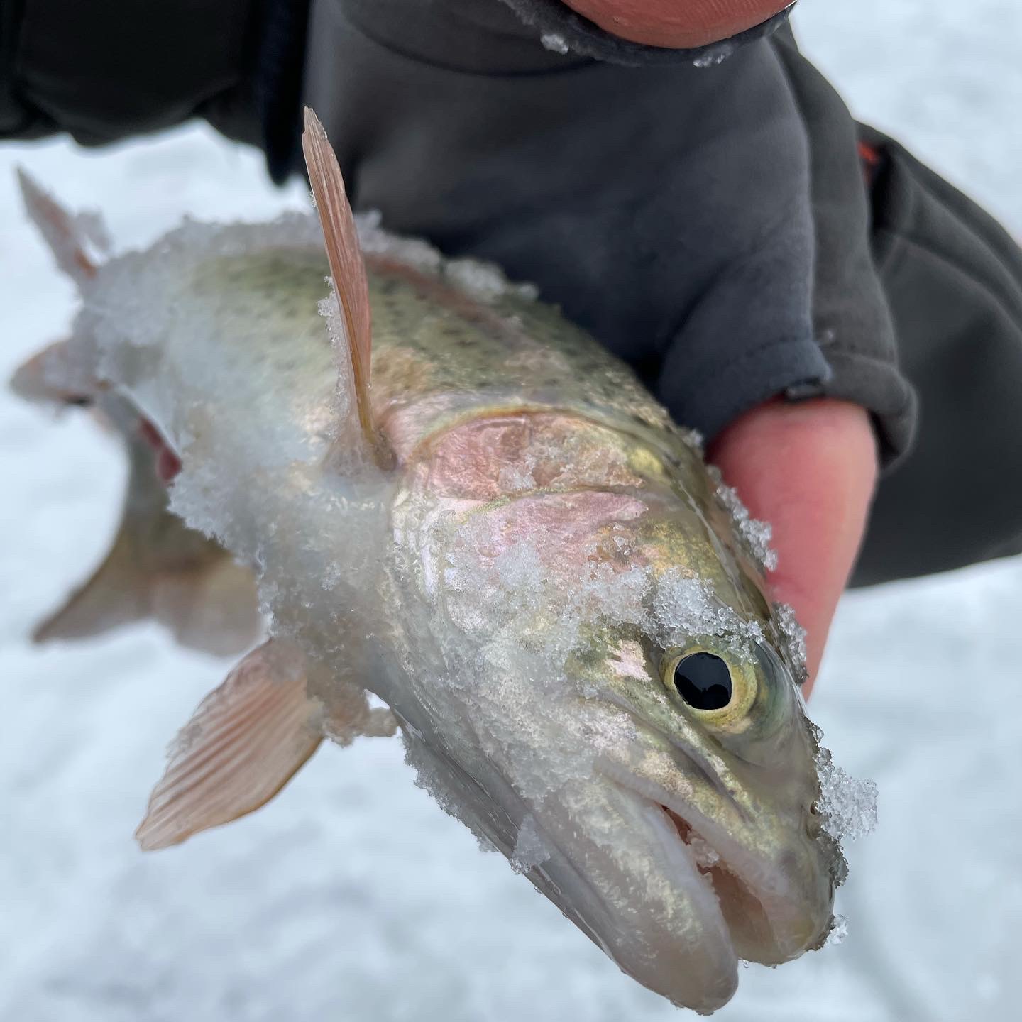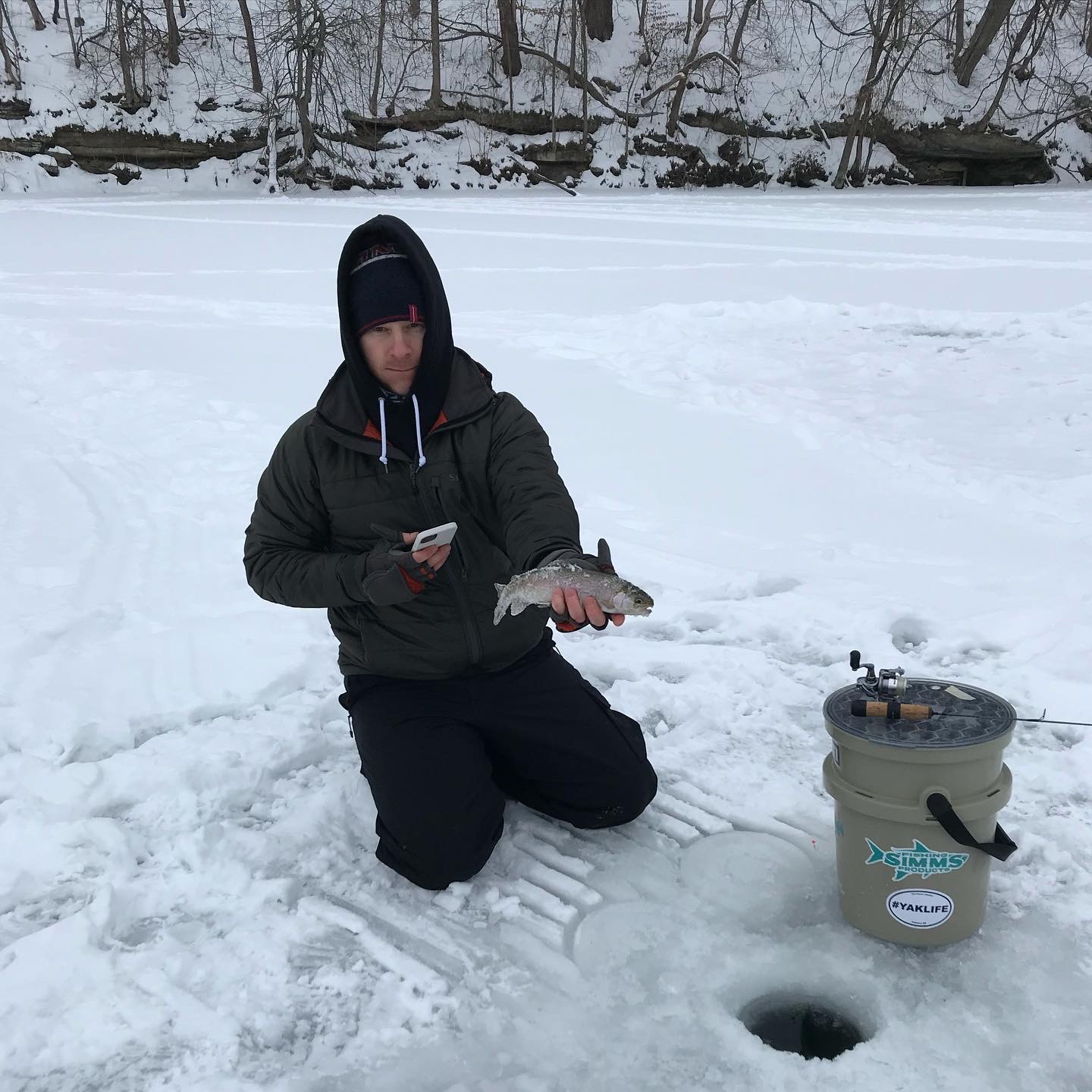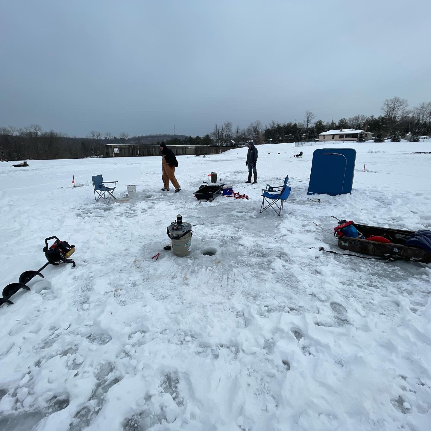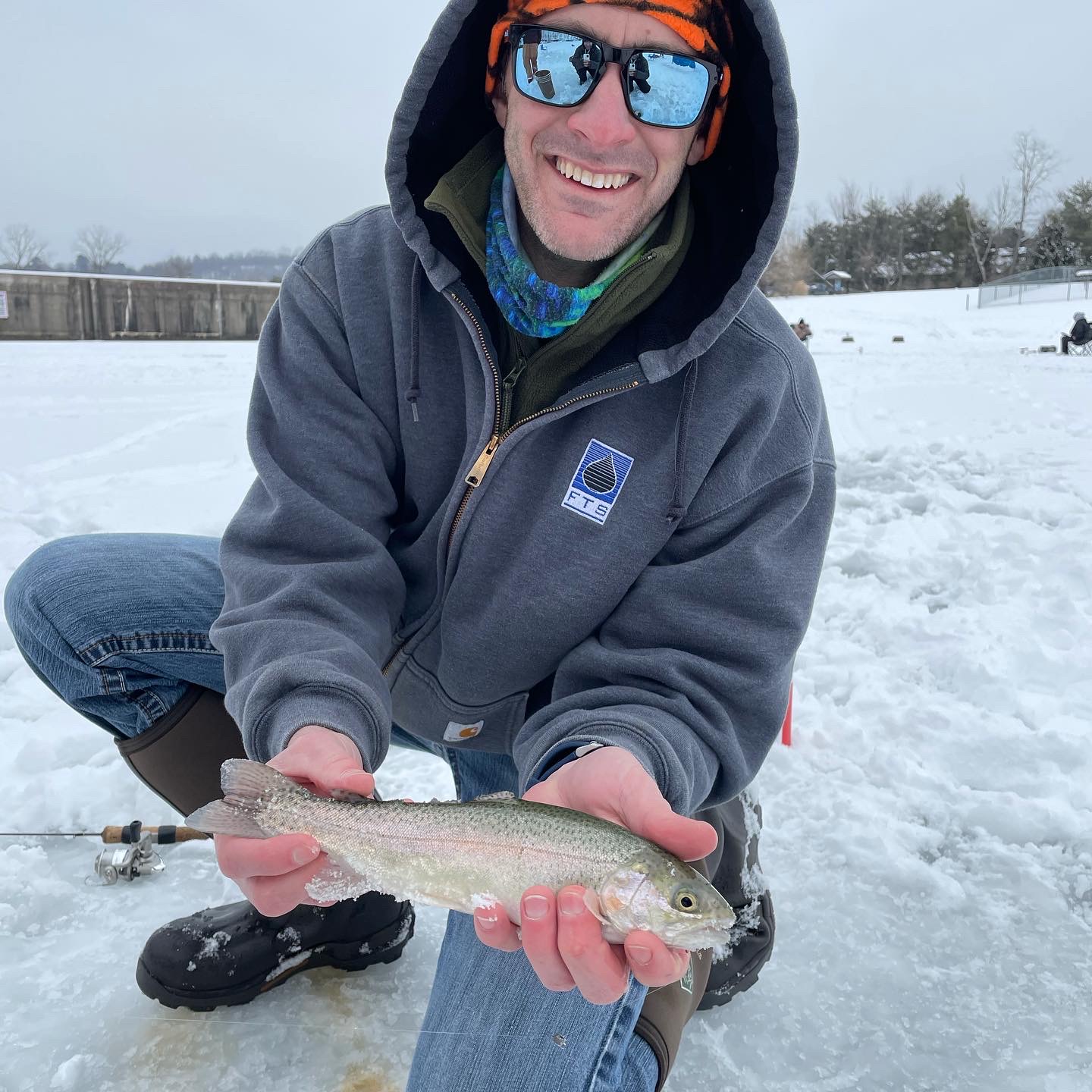 Canonsburgh Lake Stockies were active on Minnows, Meal worms and maggots. Ice is about 5 inches thick down near the dam. We got started on the water at 7am and fished till noon.