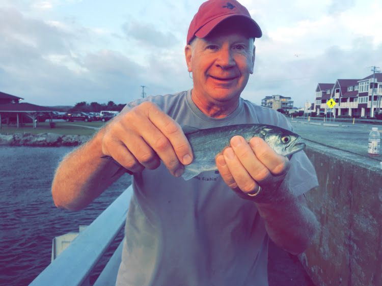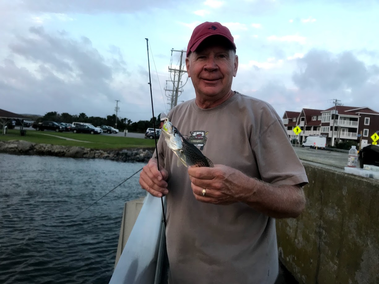 When we arrived Sunday you could hear the ocean waves crashing from inside the house on the beach. Surf fishing was going to be a mess all week so I had to shit my game plan. I pulled up google and started looking for fishing access areas to hit on the sound side. I cam across Melvin Daniels Bridge which just a couple miles from the house. I told the guys the plans we left the house before daylight. When we arrived we saw about a dozen anglers fishing from both sides of the bridge. The current was moving pretty good under the bridge (tide was going out) and some fish were being caught. I packed mostly all light gear for this trip and just 2 surf rods anticipating ocean fishing to be scrap. We used some inland fishing rods and tossed Berkley Gulp Baits around the bridge. We caught some Speckled Trout, White Fish and Blue Fish. Nothing was of any size to be excited about but the lines were wet with fish slime.