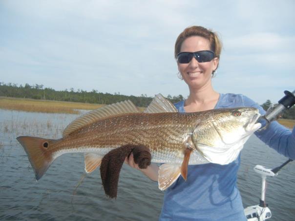 Photo of the Week, Shannon Cousineau holding her 10lb Red Drum.